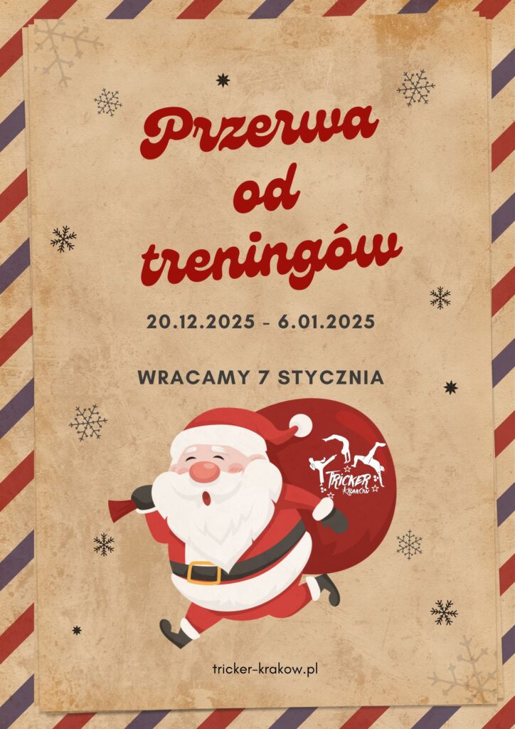 INFORMUJEMY, ŻE PRZERWA ŚWIĄTECZNA W TRENIGACH BEDZIE W DNIACH 20.12.2015 - 06.01.2025.